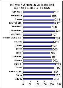 The NAEP released the 2009 Urban District NAEP results recently, which of course was an invitation to go exploring the data. I thought it would be interesting to look at the results for 4th grade reading.