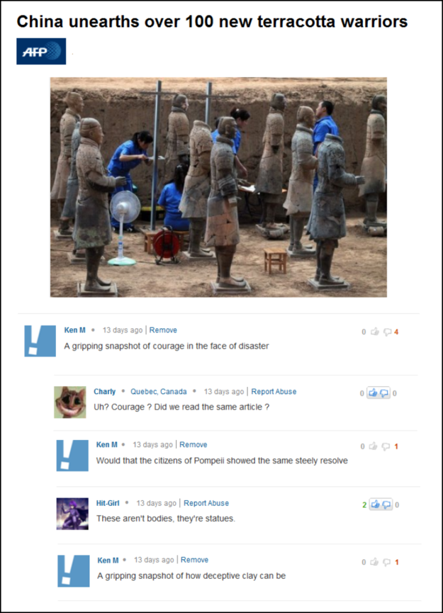 Ken M, the nom-de-plume of comedian Kenneth McCarthy, pops into comment sections with a childlike wonder and an idiocy that is so deep and true that it drives self-righteous and pedantic internet commenters nuts. Here are a couple of examples:
