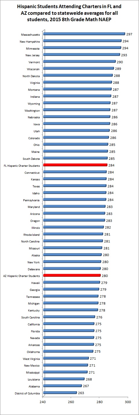 FL Hispanic Students Attending Charters Do Math like Connecticut, AZ Hispanic Charter Students like Delaware