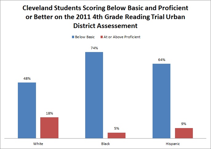 Now you can look at the below figure and ask yourself just who needs to reconsider what. The red line is FCAT 1 scores for Black students, the Green line is for Hispanic students, and the blue line is for all students.