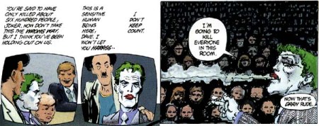 Here the influence of Miller’s Dark Knight Returns is obvious, although Miller’s Joker is primarily motivated by a desire for mass murder and cares about Batman’s one rule only secondarily: