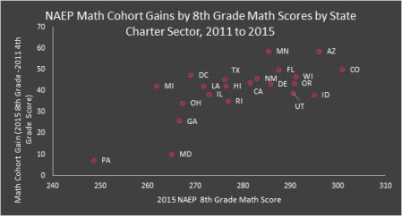 So I was looking at the National Alliance for Public Charter Schools Dashboard on state charter school sectors trying to figure out how the Arizona Charter sector managed to put it all together to rock the 2015 NAEP like a rock star on an epic hotel room thrashing bender. Just as a reminder, Arizona has long been known as a Wild West of charter schooling- liberal authorizing, relatively light-touch state oversight, etc. Just the sort of thing that a central planner hates. In addition, the sector is not generously funded by national standards, pulling in about $8k per student from all sources, and educates a majority-minority student body. Moreover the Credo analysis from a few years ago held its nose at AZ charter results. And yet, the 2015 NAEP comes in and shows AZ charter students scoring like a New England state in all four exams and these results are backed up by the state AZ Merit exam. What gives?