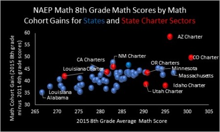 And then, it all happened again in 2014…and 2015…and 2016…and right now. Any look into academic results in a constantly changing Arizona charter sector is merely a snapshot. This makes it entirely possible for analysts like CREDO and Marty West to have found meh results in 2012 but for NAEP to show this in 2015: