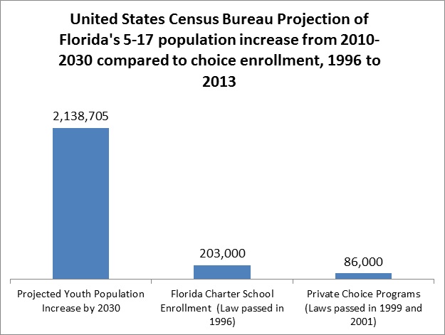 Like Arizona, Florida’s current choice programs are simply too small to absorb more than a small portion of the coming youth population increase.
