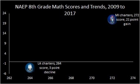 RSD advocates have a theory of change largely based upon increased state test scores in New Orleans. The more recent state data and NAEP however both seem to be signalling a warning sign. If this is just my preconceived notions getting the better of me, please help me out. Nevermind Arizona, based on anything and everything we can gather from Credo, NAEP, recent state scores and even random assignment studies, why should Louisiana charter policies be touted in preference to Michigan’s based upon the available results?