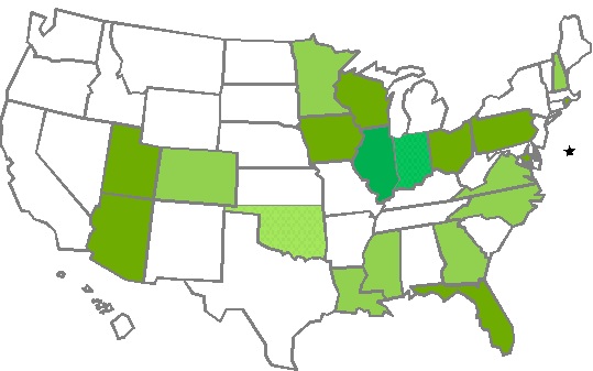 Iowa met the standard because of a healthy and growing tax credit program and a weak charter school law (3 total schools), so give them an *. Wisconsin meets the bar with the combination of private choice programs and a charter school program that (last I heard) is still bottled up in Milwaukee, so kind of an * too.